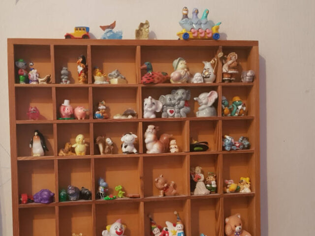 Mir fiel mein Setzkasten ein. Mein Großvater hatte ihn gebaut und mir geschenkt. Wenn meine Großeltern zu Besuch kamen, brachten sie mir hin und wieder eine Figur dafür mit. Ich habe den Setzkasten und auch die Figuren bei meiner Mutter wiedergefunden. Er hat mehr als 24 kleinere und größere Fächer.