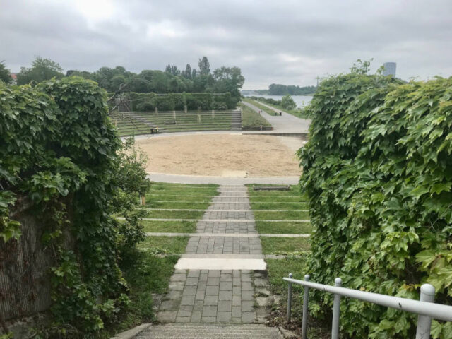 Manche lieben die Pirat-Bucht, weil sie mit den Öffis gut zu erreichen ist und es Schatten und Sand gibt, doch manche finden dort die Steine am Ufer störend und auch der Einstieg über die Treppe, die manchmal rutschig sein kann, wurde schon kritisiert. Vielleicht wurde genau deswegen in der Kaisermühlenbucht der neue Arena Beach gestaltet.