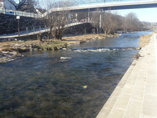Tische und Bänke gibt es entlang dieses Abschnitts nicht viele. Dafür aber größere Steine und kleine Mauern, die sich zum Draufsetzen gut eignen. So kann die mitgebrachte Jause am Wasser gegessen werden.