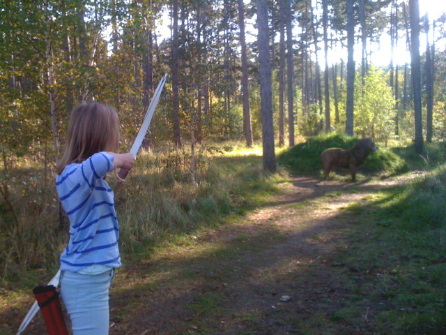 Zuerst gingen wir Bogenschießen. Nach einer kurzen Einführung ging es los. Der Parcour geht eine Runde durch den Wald. Immer wieder sind Tiere aufgestellt, die groß genug sind, dass auch Anfänger sie treffen. Mit Pfeil und Bogen durch die Natur zu streifen, gibt echt was her. Wir haben das Anpirschen und die Konzentration des Bogenschießens genossen. Als nächstes kamen wir beim Streichelzoo vorbei, der natürlich auch besucht wurde.