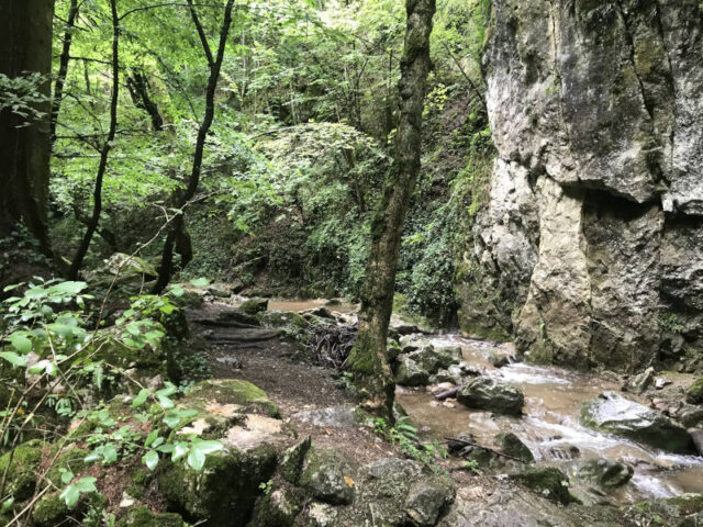 Eine Klamm ist eine ideale Abwechslung, wenn es im Sommer vor Hitze flirrt. Die Johannesbachklamm in Würflach haben wir kennengelernt, weil Freunde sich dort in der Nähe ein Haus gekauft haben. Dass es ein beliebtes Ausflugsziel für Familien ist, hab ich vorher nicht gewusst. Von Wien fährt man mit dem Auto eine Stunde, mit den Öffis ca. 20 Minuten länger. Direkt beim Eingang der Klamm gibt es einen Parkplatz und öffentliche Toiletten sowie die Möglichkeit zum Einkehren bei der Klammwirtin. Vielleicht hatte ich einfach Glück, aber ich habe die Johannesbachklamm noch nie überfüllt erlebt, was einem bei den Myrafällen schon passieren kann.