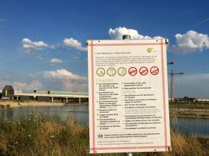 Nun scheint die Seestadt, genauer gesagt der Badesee dort, bei den Kids total beliebt zu sein. Seit Neuestem fahren alle dort hin zum Baden. Also bin ich mal mit meinen Kinder mitgegangen. Wir waren an einem Mittwoch dort, aber es war wirklich viel los. Gelichtet hat es sich dann erst am Abend.