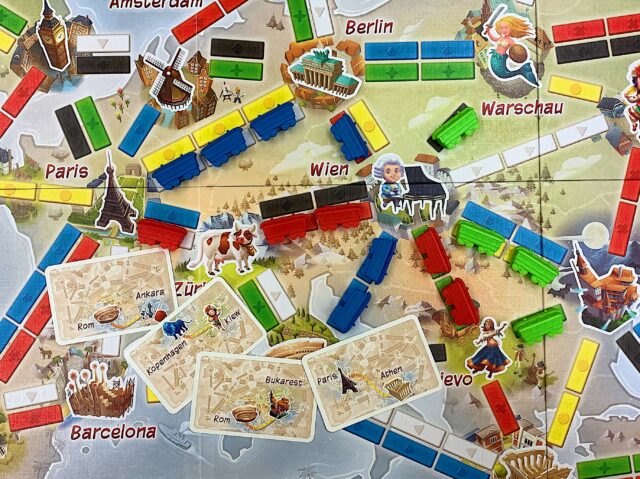 In den Spielen der „Zug um Zug“-Reihe steht die Routenplanung im Mittelpunkt. Mithilfe von Karten baut ihr Zugstrecken und versucht so, verschiedenen Zielstädte miteinander zu verbinden. In der Spielvariante ab 8 bereist ihr die USA. In der Junior-Variante entdeckt ihr europäische Städte, außerdem gibt es zahlreiche Erweiterungen mit Spielplänen von Kontinenten und Ländern der ganzen Welt.