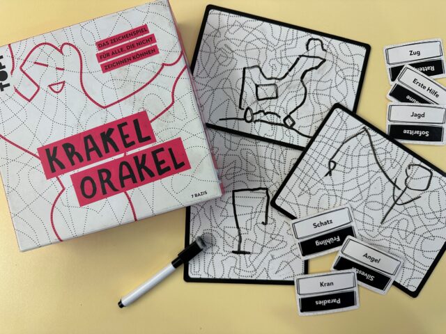 Bei Krakel Orakel sind alle durch die Spielidee gleichermaßen eingeschränkt und weil es ein kooperatives Spiel ist, gewinnt oder verliert man auch gemeinsam.