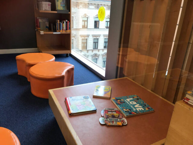 In vielen Büchereien gibt es auch Kinderbücher in anderen Sprachen. Da ist nicht nur Englisch vertreten oder Französisch, sondern auch Polnisch oder Kroatisch. Besonders groß ist das Angebot natürlich in der Hauptbücherei im 7. Bezirk oder in der Bücherei der Weltsprachen im 15. Bezirk. Dort gibt es auch nette Kinderecken, in denen ihr es euch vor Ort gemütlich machen könnt und in den Büchern schmökern.