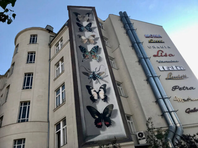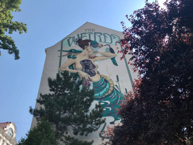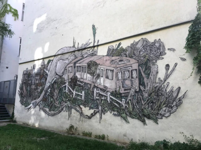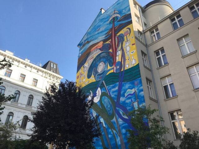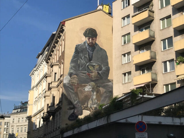 Wir sind der Mollardgasse weiter gefolgt bis zur Hofmühlgasse. Dort sind beim Richard Waldemar Park gleich mehrere Murals, die ihr bestaunen könnt. Neben der riesigen Schmetterlingsvitrine und „Des Malers Sechste“ ist dort auch das Titelbild dieses Beitrags zu finden.