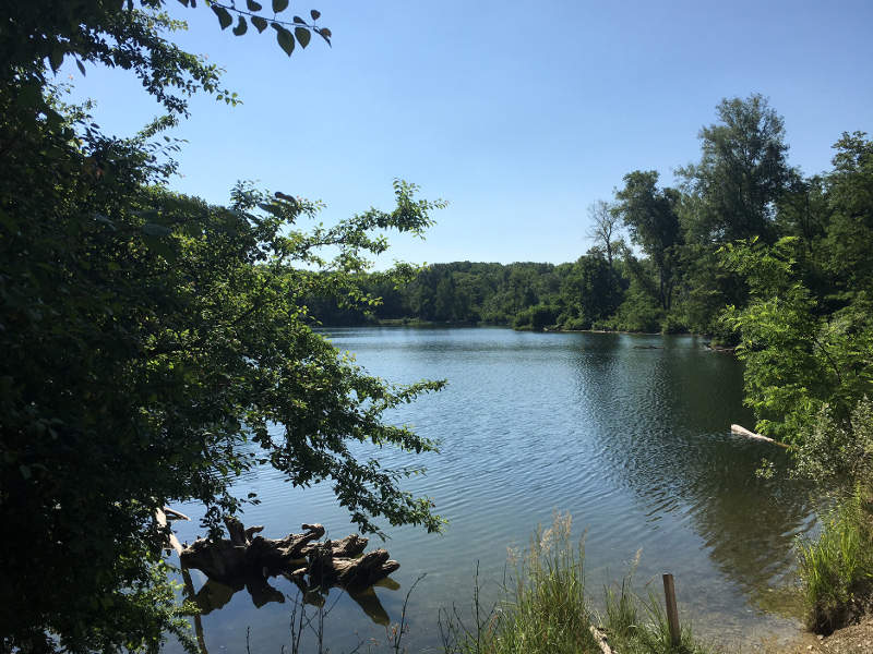 Mir gefällt der Auwald, ich mag es, dass da die Bäume oft so dicht nebeneinander sind oder welche herumliegen, die von Bibern angenagt sind und ich liebe die großen Birken. Ich finde es mittlerweile echt cool, dass eine Großstadt wie Wien so einen schönen Nationalpark hat, den man durchwandern und sogar mit dem Rad durchfahren darf. Und dass man sich zwischendurch abkühlen kann, entweder in der Dechantlacke, wo wir hier vorbeigekommen sind oder in der Panozzalacke, das finde ich echt super fein.