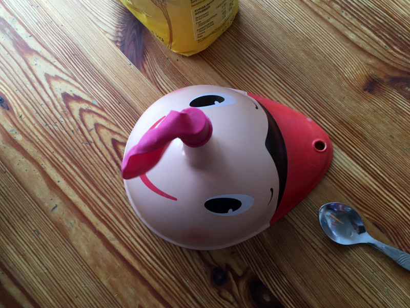 - Dann füllt ihr mit einem Löffel trockenem Sand oder Mehl in den Trichter. Meist muss man mit dem Löffelstil stochern, damit der Sand bzw. das Mehl durch den dünnen Trichterstil in den Luftballon hineingeht.