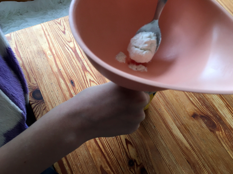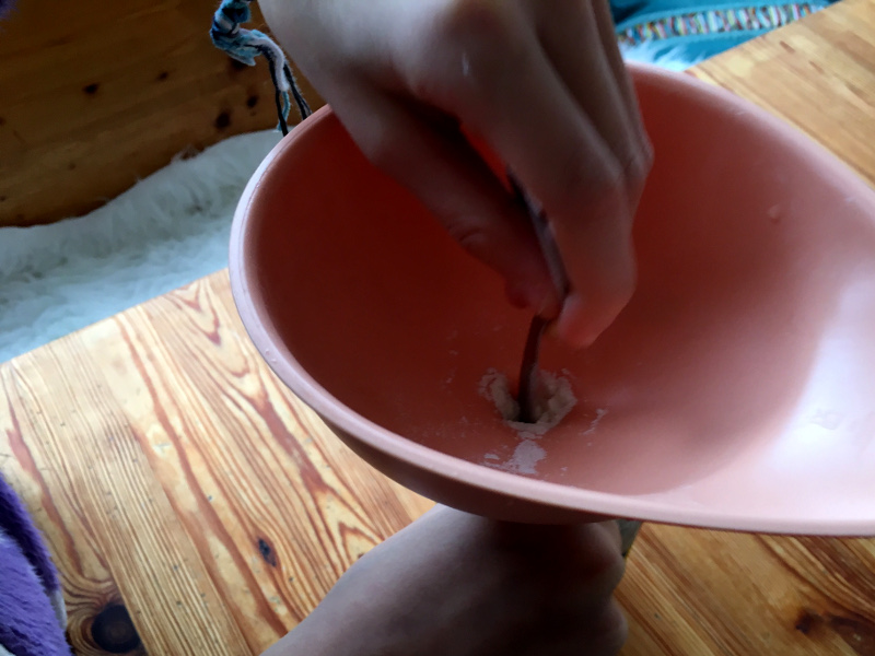 - Mehl oder Sand – wir haben hier Mehl genommen, weil ich keinen Sand zu Hause hatte.