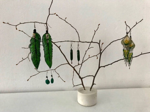 Da das Ohrring-Zubehör so billig ist und einfach zu verwenden, habt ihr sicher Lust noch mehr zu basteln. Wie ihr kleine Buch-Ohrringe bastelt erfahrt ihr hier. Wie ihr kaputte Barbies zu Ohrringen recyceln könnt beschreiben wir hier. Und hier erzählen wir von Blätterbasteleien mit Blätter-Ohrringen. Und weil es für all den Schmuck dann auch eine nette Möglichkeit des Verwahrens und Ausstellens braucht, haben wir hier einen Schmuckaufsteller gebastelt, den ihr auch an die Wand hängen könnt.
