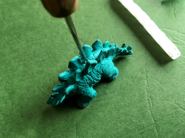 - Dann steckt ihr den Stecker für die kleinen Tortenkerzen hinein und gebt die Kerze drauf. Schon ist der Dinokerzenständer fertig 🙂
