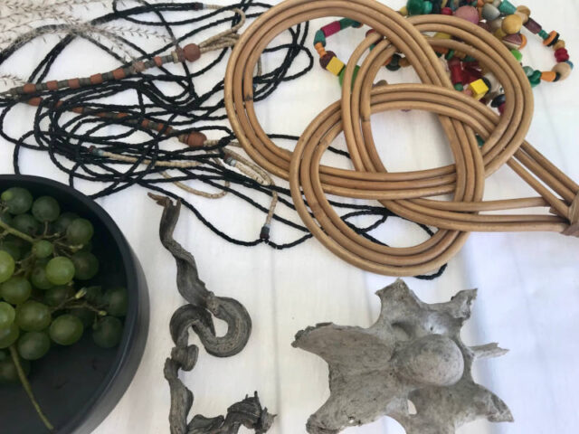 - Gegenstände, die ihr darauf ablichten möchtet – wir haben alles Mögliche ausprobiert: ein gepresstes Blatt, einen Lochschal, Gräser, auch Ringe, Ketten, einen Untersetzter uvm.