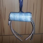 Als Halterung fädelt ihr ein Band durch die Rolle. Ich habe das Band mit der Klammermaschine in der Mitte zusammengeklammert.