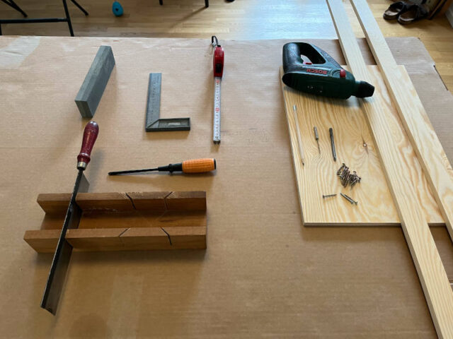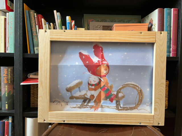Kamishibai ist ein japanisches Erzähltheater. Das Kamishibai ist meistens aus Holz und bietet einen Rahmen für Illustrationen. So könnt ihr Geschichten erzählen und gleichzeitig mit wechselnden Illustrationen begleiten. Kamishibais sind recht teuer, darum habe ich entschieden mir selbst eines zu bauen. Die Anleitung dafür habe ich hier gefunden. In diesem YouTube-Video wird alles genau erklärt.