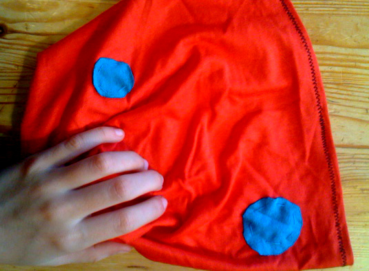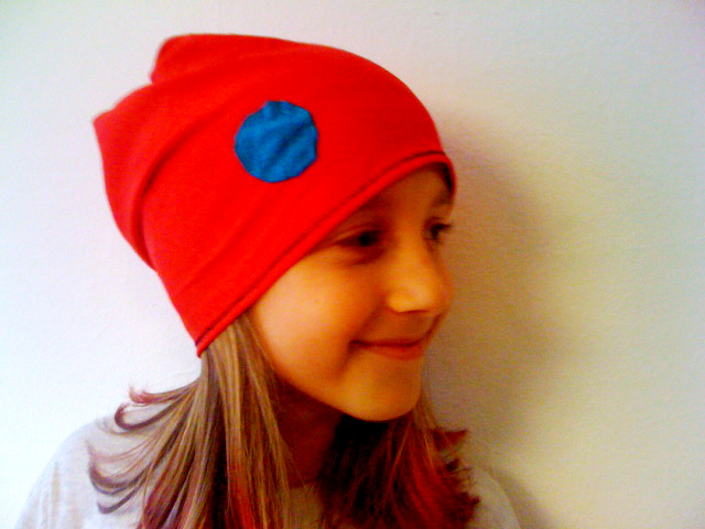 Letztens kam meine Tochter von einer Freundin nach Hause und meinte, sie wolle eine Mütze nähen – mit Applikationen. Aha. Ich hab noch nie eine Mütze gemacht, aber wir haben einfach von einer, die uns gefiel, den Schnitt abgenommen. Bei mir muss es da nicht immer ganz perfekt und genau sein – auch das hilft in Punkto Kreativität ganz ungemein. Dann wurden die Teile zusammengenäht, Applikationen ausgeschnitten und mit Hand draufgenäht und schon war die Mütze fertig.