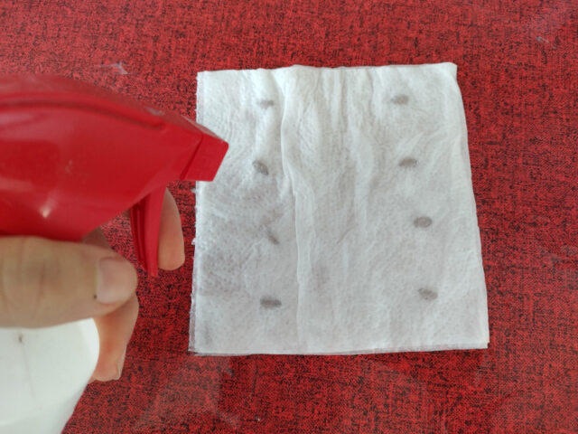 Danach müsst ihr die Küchenrolle über die Kerne falten und diese befeuchten. Ich nehme dafür meist eine Sprühflasche, es kann aber auch einfach ein wenig Wasser darüber geleert werden.