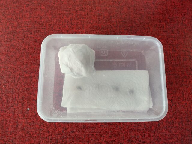 Falls das der Fall ist, tauscht die Küchenrolle einfach gegen eine neue aus und befeuchtet sie wieder.