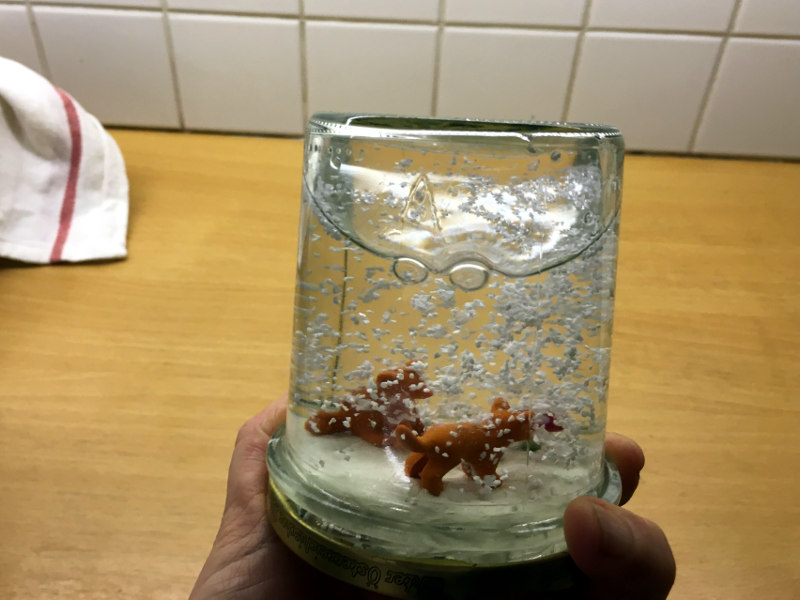 • ein Glas mit Schraubverschluss oder eine leere Schneekugel, die ist im Bastelgeschäft erhältlich