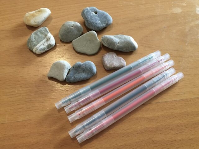Wenn die Steine gewaschen und ordentlich trocken sind und die Motive feststehen, dann kann mit dem Zeichnen begonnen werden. Wenn ihr unsicher seid, dann könnt ihr einfach mit dem Bleistift vorzeichnen bis ihr zufrieden seid. Dann mit den Stiften eurer Wahl nachziehen und trocknen lassen. Wenn alles fertig ist dann kommen die Steine am besten in einen Stoffbeutel.