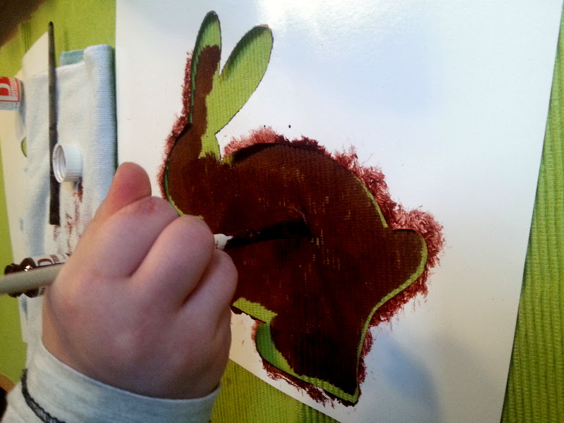 - eine Hasenschablone (wir haben einen sitzenden und einen liegenden Hasen ausgeschnitten)
