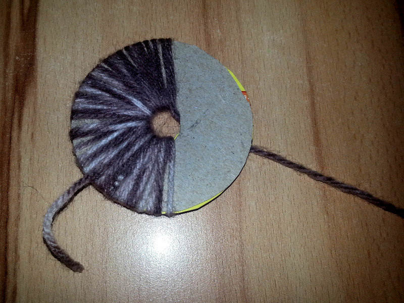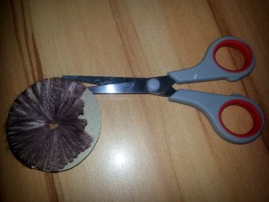 - zwei Kartonscheiben, um einen Pompom (Wollball) zu machen