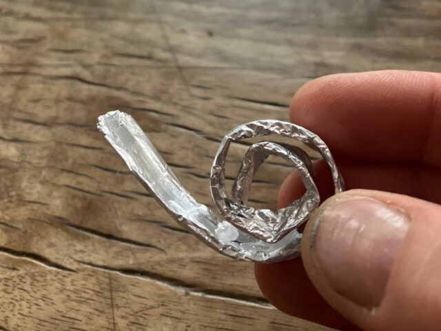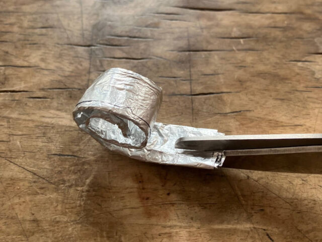 - Für die DIY – Upcycling-Schnecken braucht Ihr Alu Folie, gerne gebraucht aber nicht verschmutzt, z.B. Schokoladen Einwickelpapier. Solltet Ihr da zu kleine Stücke haben, könnt Ihr diese überlappend übereinanderlegen.