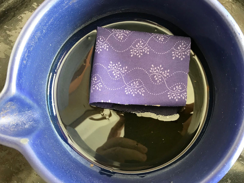 - Wenn das Wachs geschmolzen ist, legt ihr ein Tuch hinein und bedeckt es mit Wachs. Stellt den Topf wieder in den Ofen und lasst es so lang drinnen, bis das Wachs geschmolzen ist und das Tuch sich mit Wachs vollgesogen hat. Im Zweifelsfall wartet lieber ein bisschen länger, damit das Wachs richtig gut in den Stoff hineinziehen kann.