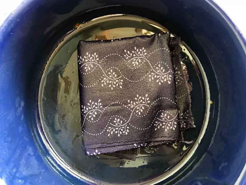 - Wenn das Tuch vollgesogen ist, nehmt es mit einer Pinzette aus dem Topf und lasst es trocknen. Das geht sehr schnell.