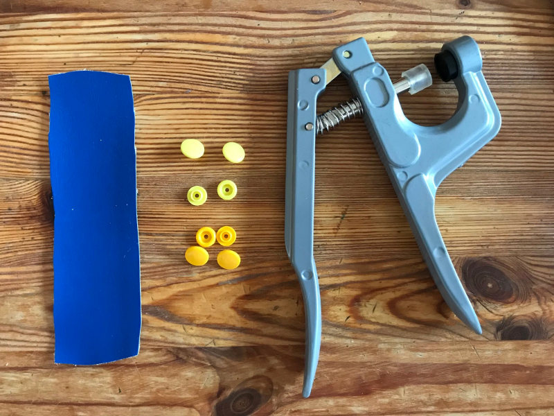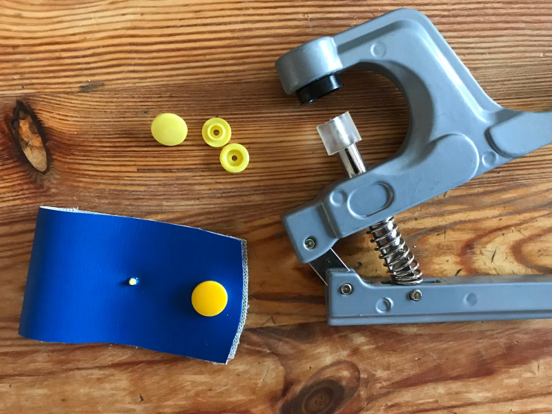 - Wählt dann die Druckknöpfe aus und legt sie griffbereit. Auch wenn es beim ersten Mal ein bisschen kompliziert ausschaut, es ist wirklich einfach. Am Besten probiert ihr einmal auf einem Stück, das nicht benötigt wird.