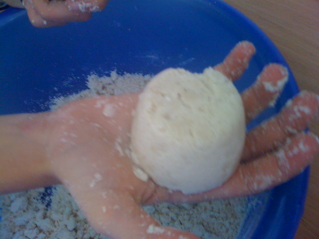 Eine tolle Idee, allerdings erinnert es mich mehr an einen lockeren Teig. Die Kinder haben trotzdem mit großer Freude damit gespielt. Tatsächlich bröselt er nicht so sehr wie „richtiger“ Sand und lässt sich gut kneten und formen. Also steht der kleinen, improvisierten Sandkiste in der Wohnung nichts mehr im Wege! 😉