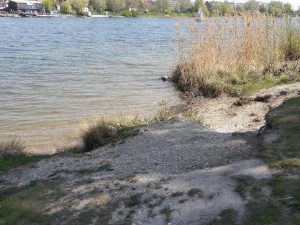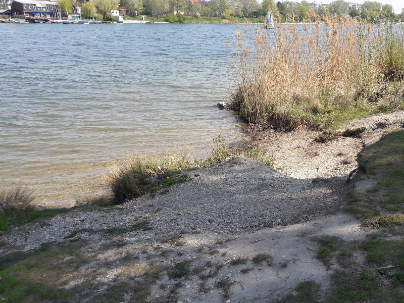 Um ins Wasser zu gelangen, müsst ihr eine kleine Böschung hinuntersteigen. Das Wasser ist flach und wird langsam tiefer. Ideal für Schwimmanfänger_innen und kleine Luftmatratzen-Ausfahrten. Gute Schwimmer_innen schwimmen die Bucht entlang zur kleinen Brücke. Wer mag kann aber auch über die Brücke spazieren und gelangt so zum gegenüberliegenden Ufer.Erreichbar ist dieser familienfreundliche Badeplatz über den Radweg entlang der Arbeiterstrandbadstraße, mit dem Bäderbus oder zu Fuß (ca. zehn Minuten mit Kindern) von der U6-Station Neue Donau.