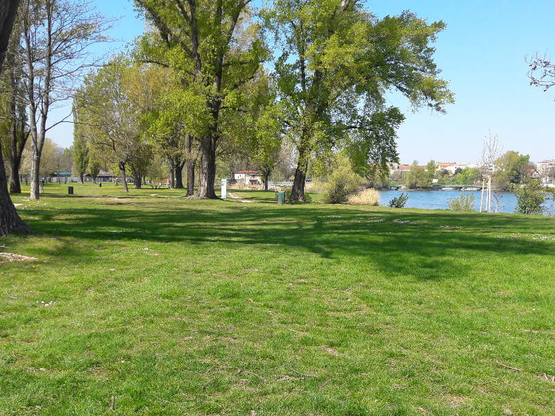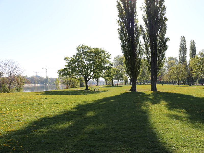 Das Dragonerhäufl, vielen auch als Romawiese bekannt, liegt in einer Bucht an der Oberen Alten Donau. Eine großzügige Liegewiese mit Sonnen- und Schattenplätzen, schönen
