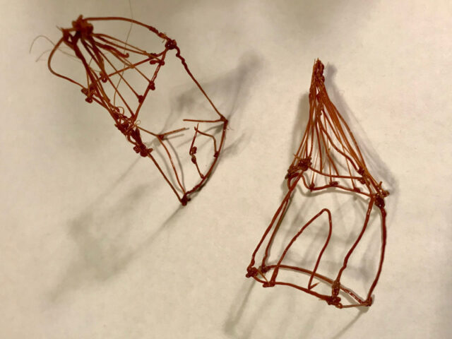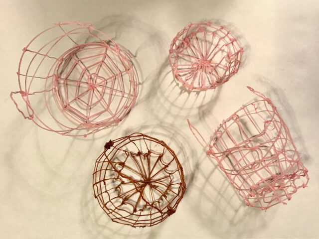 Jetzt berühren mich die filigranen Teile, die Körbe und Blüten und was sonst noch so entstand. Ich finde diese zarten Gebilde echt schön. Allerdings frag ich mich auch, wo oder wofür ich die verwenden soll und was damit geschehen kann. Das einfach nur für den Müll zu produzieren, freut mich nicht und Nippes brauche ich auch keinen. Vielleicht sind die Körbe ja ein süßes Behältnis für ein selbst ausgeblasenes oder bemaltes Osterei, das die Oma oder der Kindergärtner geschenkt bekommt…