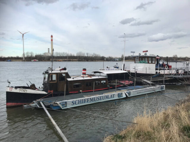Die Friedenspagode liegt bei der Hafenzufahrtsstraße, direkt neben der Donau und ist daher gut mit dem Fahrrad zu erreichen, weil der Donauuferradweg direkt dort vorbei führt. Vielleicht wollt ihr dann ja auch noch die 5km zum Friedhof der Namenlosen weiterradeln. Aber ihr könnt den Weg dorthin auch gut mit öffentlichen Verkehrsmitteln antreten. Wir sind mit dem Bus hingefahren. Von der Busstation (79B, Grünhaufenbrücke) ist es noch ein ca. 10 Minütiger Fußweg, der erst kurz an der Hafenzufahrtsstraße entlang führt und wirklich nicht besonders einladend ist. Doch dann geht es über die Grünhaufenbrücke zum Treppelweg und entlang der Donau stromabwärts. Da Schilder den Weg zur Pagode anzeigen ist der Weg dorthin einfach zu finden. Am Weg dorthin kommt ihr auch am Schiffsmuseum (derzeit leider geschlossen), der einzigen Fähre Wiens und einem Gasthaus vorbei.