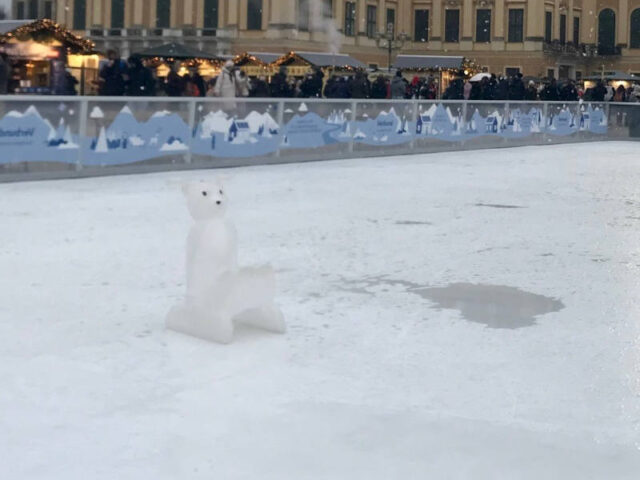 Nicht nur am Rathausplatz könnt ihr Eislaufen – dort ist es sogar auf einer kleinen Fläche für Kinder gratis – auch am Weihnachtsmarkt in Schönbrunn lädt heuer eine kleine Outdoor-Eislauffläche zum Eislaufen ein.