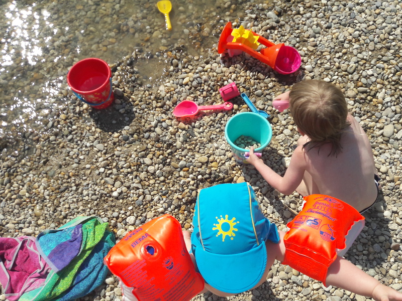 Die Wasserflachzone mit der vorgelagerten Insel ist für Nicht-Schwimmer*innen fantastisch. Meine 3,5-Jährige konnte mit und ohne Schwimmflügel hin und her schwimmen, weil das Wasser nicht tief ist. Sie war ganz stolz auf sich und hat gleich voll motiviert neue Wassertricks ausprobiert. Sie hatte richtig Spaß im Wasser. Für ihre kleine Schwester war das Ufer mit Steinen und flachem Zugang ebenfalls sehr passend.