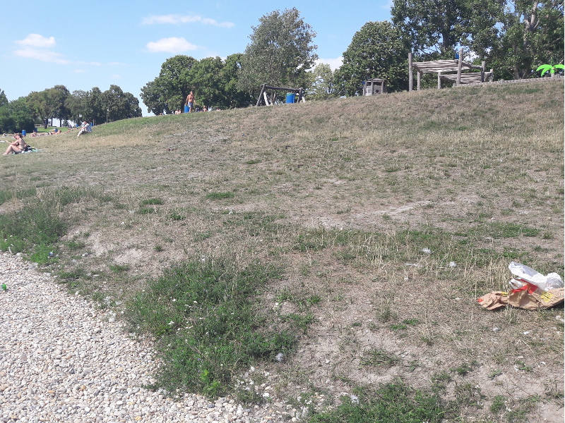 Aber leider war an dem Tag, an dem wir dort waren, die Liegewiese sehr schmutzig. Zigarettenstummel und Müll lagen herum. Es hat mich einige Zeit gekostet einen passenden Liegeplatz zu finden.