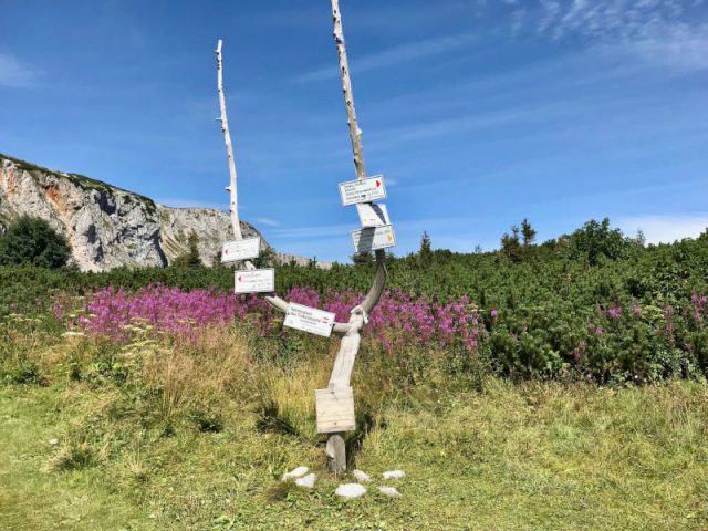 Auf der Rax gibt es mehrere Möglichkeiten. Da in jeder Gondel nur 27 Menschen Platz haben, verläuft es sich oben recht schnell. Die Rundwanderung von der Bergstation über´s Ottohaus zur Neuen Seehütte und wieder zurück ist mit 3,5-4 h angegeben und eine ideale Familienwanderung.