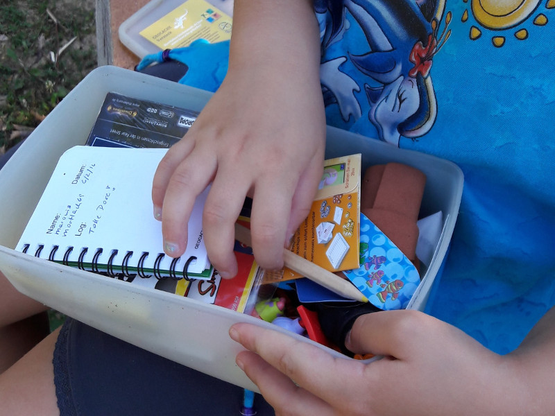Judith hatte die Qual der Wahl beim Spielzeugtauschen – ich verewigte uns im Logbuch.