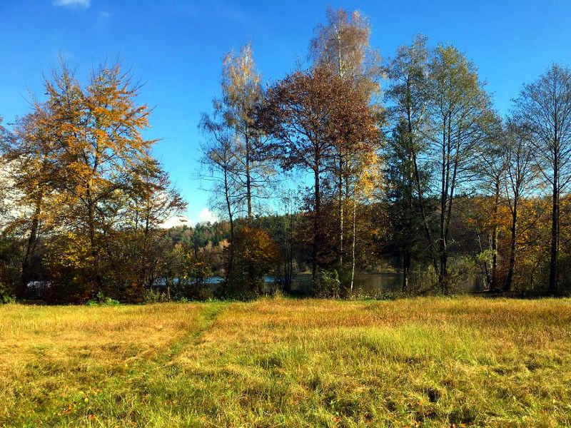 Ein wunderschöner Herbsttag und wir sitzen erstmal mit Handy bewaffnet im Auto um in die Nähe des Caches zu kommen. Als wir dem Punkt nahe genug sind, parken wir uns ein und los geht es. Es gibt nicht viele Hinweise und das GPS ist leider auch nicht so genau, hüpft mal von 2 Metern auf 10 Meter. Wir suchen ganz schön herum, klettern über ein Bächlein, schlüpfen durchs Gestrüpp und ich weiß noch gar nicht, auf was ich achten soll. Als das erste Versteck gefunden wird – ein Plastiksack, der in einer Baumwurzel versteckt liegt, bin ich erst mal überrascht: weil es gar so grindig aussieht und auch keine nette Kleinigkeit dabei ist, nur ein Glas mit einem Papier. Aber mir wird versichert, dass das sonst nicht so ist. Okay, wir tragen uns also ein und schon geht es weiter zum nächsten Cache.