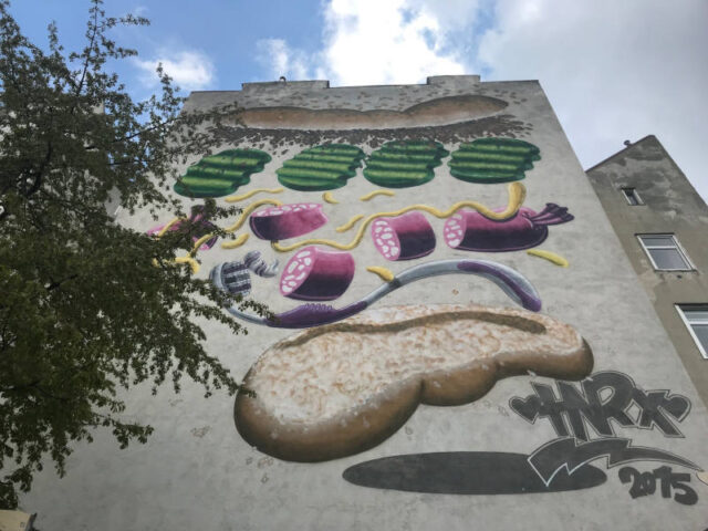 Wir schlängeln uns dann durch den 7. Bezirk über die Siebensterngasse, links biegen wir in die Mondscheingasse ein, wo euch bei der Nummer 17 ein entzückendes Bild von Stinkfish erwartet. Ihr geht weiter und biegt links in die Zollergasse ein. Von dort geht es weiter rechts in die Lindengasse, wo es bei der Nummer 40 ein Bild von Rotkäppchen & Goliath zu bestaunen gibt. Ihr folgt der Lindengasse weiter bis zur Andreasgasse, in die ihr einbiegt.