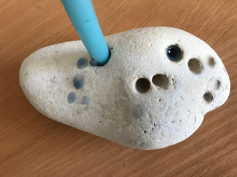 Richtet euch dann Kleber und die zu befestigenden Dinge griffbereit und klebt nach Herzenslust drauflos. Schneller als ihr euch vorstellen könnt ist der erste Stein fertig. Der zweite und auch der dritte werden nicht lange brauchen, denn bei dieser Bastelei benötigt ihr für das Zusammensuchen des Materials und die Auswahl der Arrangements passend zum Stein mehr Zeit, als für das Tun.