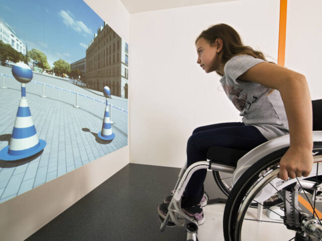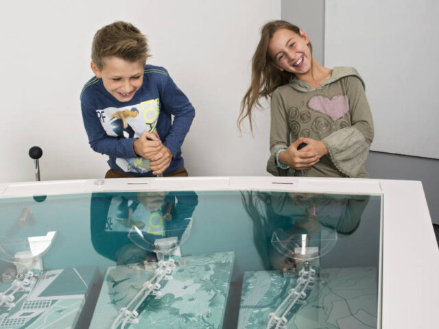 Schon im Eingangsbereich könnt ihr auf einer Rutsche eure Geschwindigkeit messen. Auch könnt ihr dort Physik hautnah erleben: In der Eingangshalle gibt es eine praktische Übung zur Hebelwirkung und Stromerzeugung durch Mechanik im Riesenhamsterrad. Im Bereich der Ausstellung könnt ihr dann z. B. einen Rollstuhl steuern und damit spüren, dass das gar nicht so einfach ist, dort hinzugelangen, wo ihr hin wollt.