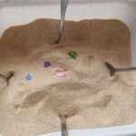 Die Kinder sitzen um die große Schüssel herum und graben nach Schätzen. Als mir meine Freundin dieses Spiel empfohlen hat, habe ich mir gedacht, voll fad. Zu meiner völligen Überraschung ist es total gut angekommen. Die Mädchen haben es geliebt und konnten gar nicht genug davon bekommen. Sie waren sogar bereit, bereits gefundene Schätze wieder vergraben zu lassen.