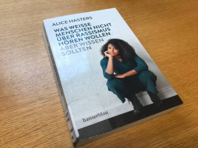 Ich habe dieses Buch in der Bücherei entdeckt und es sehr schnell gelesen, einerseits weil es sprachlich flüssig und angenehm zu lesen ist, andererseits weil Hasters es versteht, schwierige Sachen gut in die persönliche Lebensgeschichte einzuweben und sie mir dadurch einen Zugang ermöglicht hat, der sehr hilfreich war. Alice Hasters ist in Köln aufgewachsen ist und hat ein Gastschuljahr in Amerika verbracht.