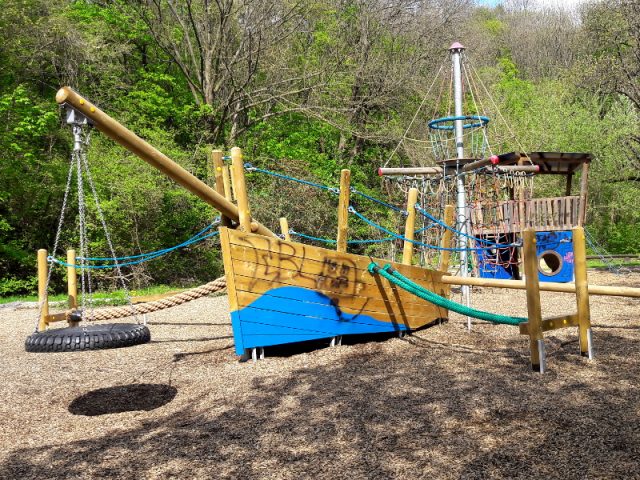 Auch wenn es im Baumgartner-Casino-Park einen kleinen Wasserspielplatz gibt, so kommt auch das große Schiff Penzing 1 ganz ohne Wasser aus und ist in seiner Größe wirklich ein spektakulärer Ort um Kinderträume wahr werden zu lassen.