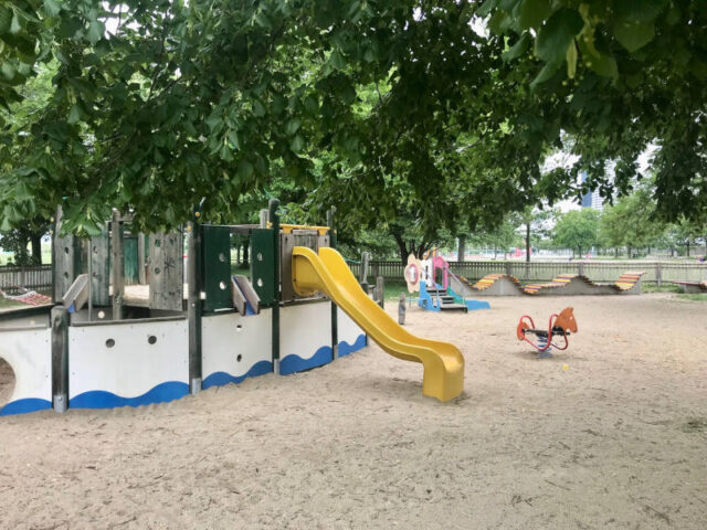 Manchmal braucht man gar kein Wasser, um Kapitän*in zu spielen. Auch wenn die Neue Donau nicht weit ist, so kommt dieser Spielplatz ohne Wasser aus und trotzdem ist er ideal, wenn ihr mit Booten und Schiffen spielen wollt, denn hier gibt es gleich mehrere davon.