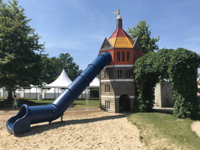 Der Wasserspielplatz beim Wasserturm ist ein Highlight für all jene, die Wasserspiele lieben und mit Fantasie gesegnet sind: Für sie kann das Floß dort ein Schiff sein, mit dem man sich sogar wirklich bewegen kann, wenn auch mit eigener Muskelkraft. Schwimmen kann man hier allerdings nicht.