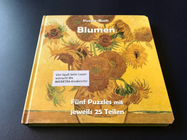 Dieses Kinderbuch stellt nicht nur fünf berühmte Kunstwerke vor, die Blumen darstellen. Mit dabei sind auch Puzzles von diesen Bildern mit jeweils 25 Teilen. So lädt es ein, das Bild nicht nur anzuschauen sondern es selbst zusammensetzen und somit haptisch erfahrbar zu machen. Auf der linken Seite ist jeweils ein kurzer Text der zum genauen betrachten des Bildes einlädt, wichtige Begriffe im Zusammenhang mit dem Bild erklärt wie z. B. Stillleben oder Impressionismus entstand und dann ein paar Zeilen zum Künstler bzw. zur Künstlerin.