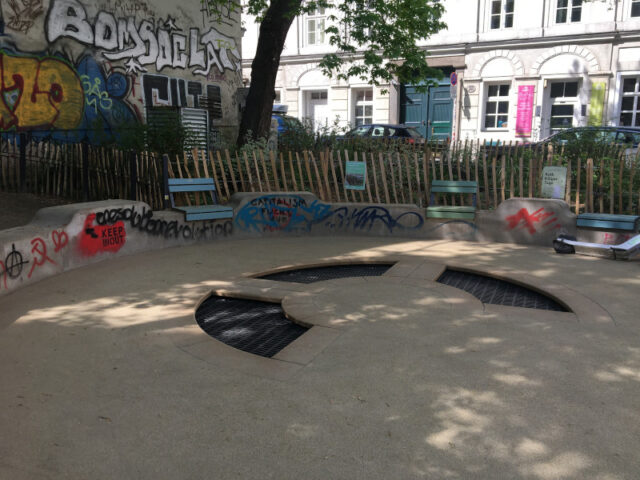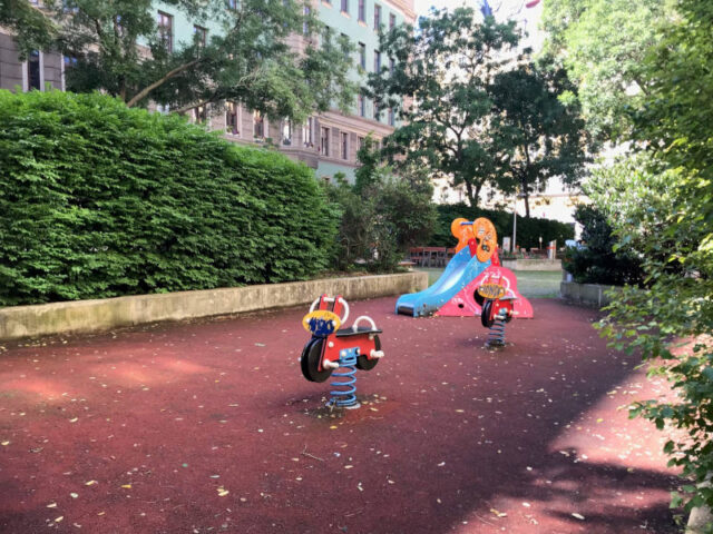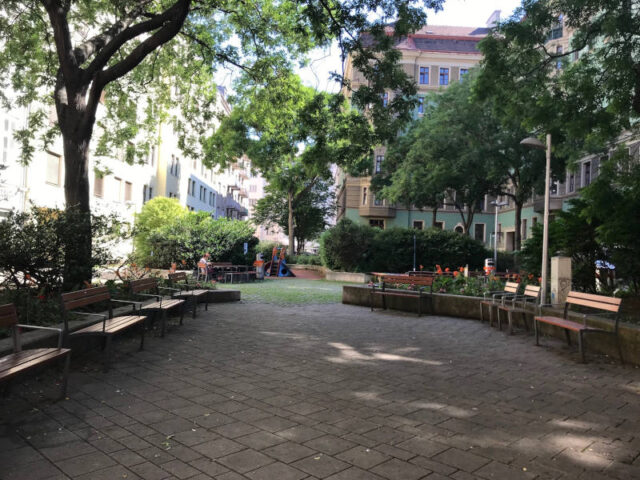 In meiner Zeit als Pädagogin aber auch beim Babysitten neben dem Studium habe ich viele Spielplätze besucht. Die großen Spielplätze mit den außergewöhnlichen Spielgeräten bleiben da natürlich ganz besonders in Erinnerung. Aber genau so wichtig sind die vielen kleinen versteckten Spielplätze für zwischendurch. Wie kleine Inseln schaffen sie Raum für’s Durchatmen und Spielen in der Großstadt. Perfekt für ein kurzes Austoben vor dem Abendessen oder dem Mittagsschlaf, aber genauso bei Erledigungen außerhalb der eigenen Wohngegend, wenn man z. B. nach einem Zahnarztbesuch noch kurz ein wenig Entspannung braucht. Hier stellen wir euch drei dieser kleinen Spielplätze vor.